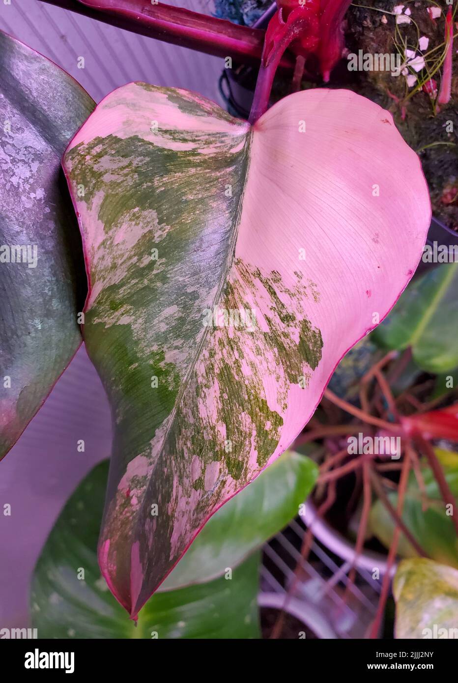 Beautiful Variegated Leaf Of Philodendron Strawberry Shake A Rare And Expensive Houseplant Stock Photo Alamy